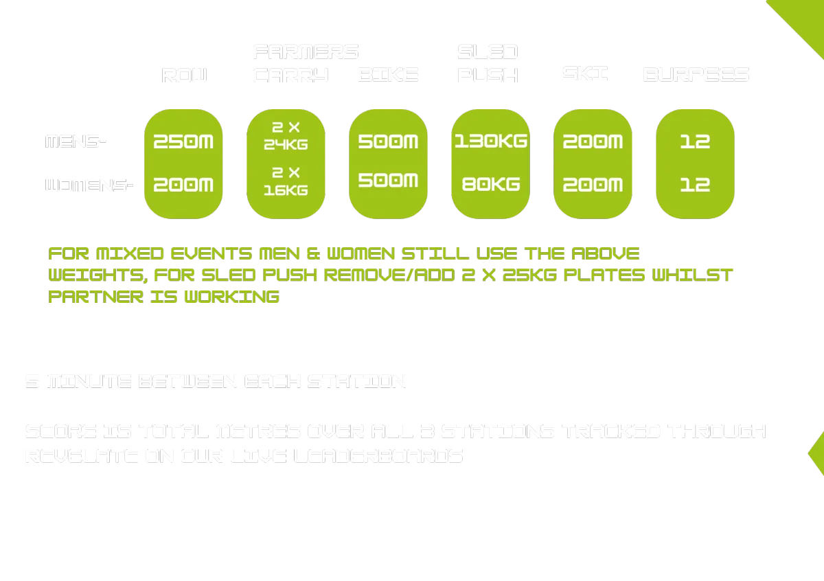 You’ll complete all three workout blocks together, rotating stations every 18 minutes. It’s the ultimate team challenge—designed to be tough, but accessible, and loads of fun.